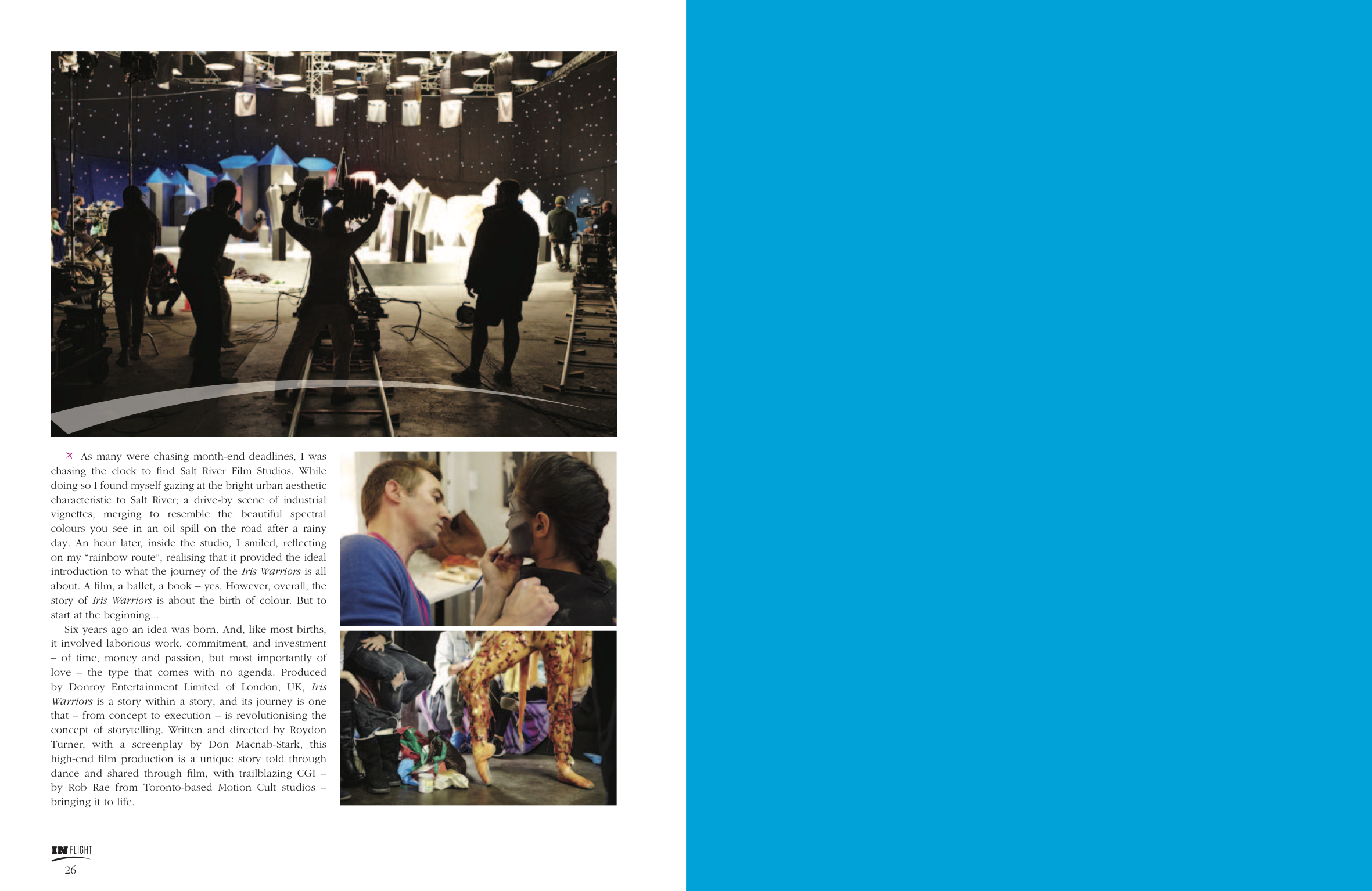 I attended a rare behind-the-scenes preview of the film Iris Warriors while it was being filmed on location the Salt River Film Studios in Cape Town, South Africa on 31 May, 2016. Published in Inflight magazine, my article presents a first-hand experience of being on set, also exploring the role of colour and the ubiquitous message in this film-book-ballet.
