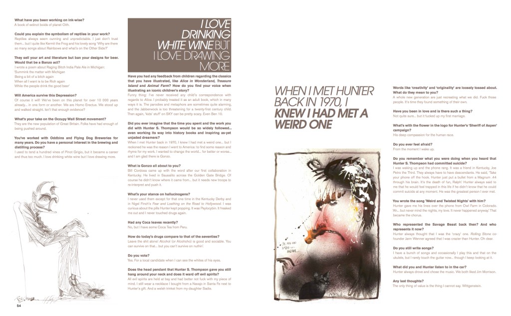 This interview took place in October 2011, and was published in the Jan/Feb/Mar edition of one small seed magazine. It was an absolute honour to spark dialogue with Ralph Steadman; he completely transformed my view on humanity. His humour, candour and beauty shines so strongly. What the experience showed me is something I treasure daily: keep it real, whatever we do in life, authenticity and embracing our idiosyncrasies is not a small feat. Long live us freaks.