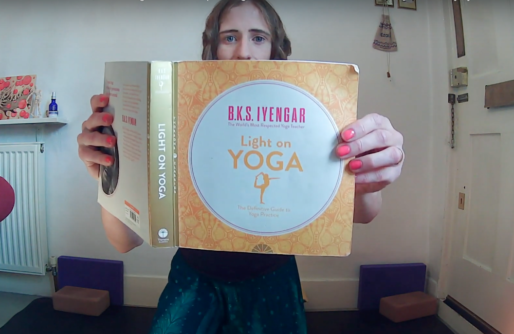 – Practice Ahimsa, non-harming, the first of the Yamas (universal moralities); non-harming to yourself, to others, to the world and to animals. So don’t do anything which will cause you or anyone else harm. Listen to your body, how it feels today; and if you feel any new, sharp or shooting pain, come out of what you are doing and take balasana (child’s pose) or savasana (corpse)–these are still active asanas, you are still breathing!